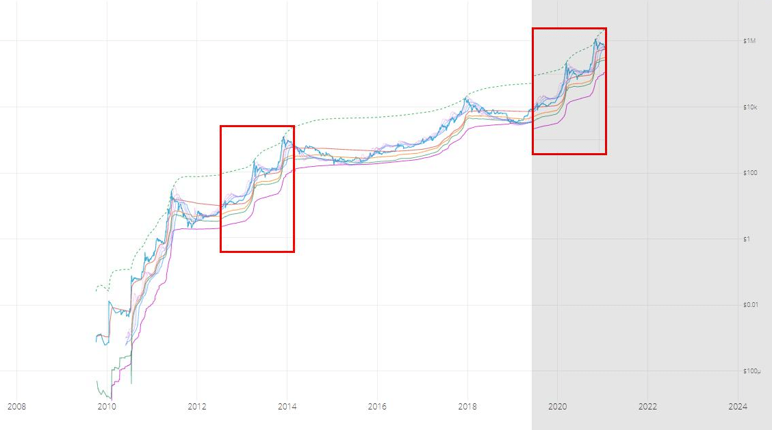 In short, the point is that if the pattern of the 2013-2014 bull market repeats itself again, then the price forecast of John McAfee may prove right and BTC may reach the $1 million mark.