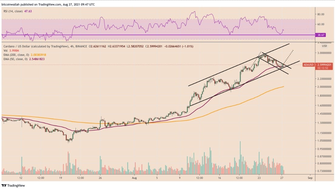 Here, the length of ADA’s trendline is about $0.59. The base of this length coincides with the $2.48 range, while its peak coincides with the $3.06 range. The 50 4-hour EMA (also called the velvet wave) is another indicator that indicates a bullish trend for Cardano’s token.