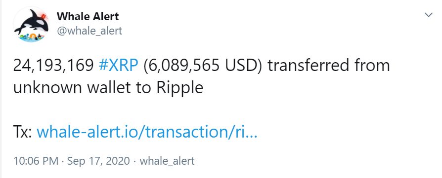 XRPL Monitor has reported that the San Francisco-based payments company Ripple has moved a large amount of XRP between wallets. Within the company, an amount of 24.2 million XRP worth $6,089,565 has been transferred from an unknown wallet to Ripple. The report was reported by Whale Alert as well.