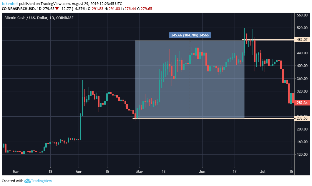 If we evaluate the performance of BCH in the second quarter of 2019, we come to know that the price showed a great rally as the value was hovering at $233.55 on 28 April that soared to the striking sky mark of $482.07 on 26 June and increased by 104.78% that is a remarkable rally. This incident cleared our doubts about its underlying tech project and its fundamental developments.
