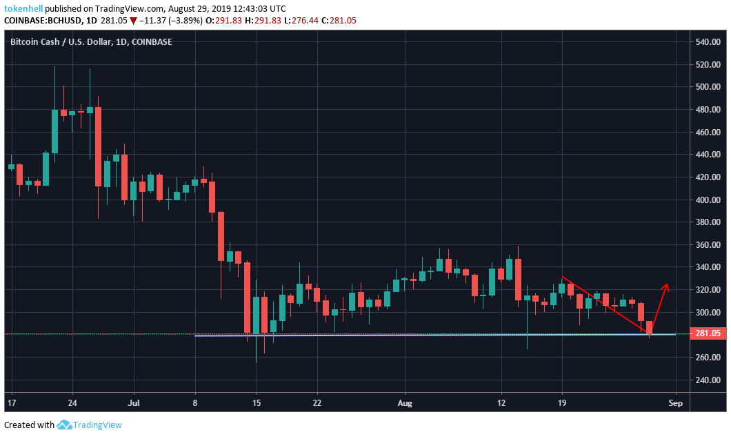 The current price value is hovering at around $280 that is the lowest position of cryptocurrency. There is a strong support level at $281.05 that will pamper the trend line of Bitcoin Cash in the upward direction.