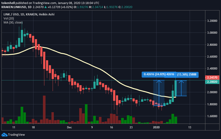 The partnership of Chainlink with the 2Key Network is the main reason for the price rally. The partnership made on Jan.3 and the green candles started to make from Jan.3, it means, both are interrelated.