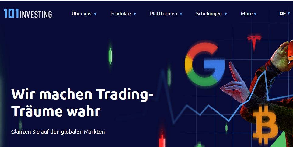 Der Broker hat auf seiner Website einen Verdienstkalender und einen Wirtschaftskalender. 101Investing stellt seine Website auf Englisch, Spanisch, Italienisch, Deutsch und Portugiesisch zur Verfügung, was einen zusätzlichen Vorteil darstellt.