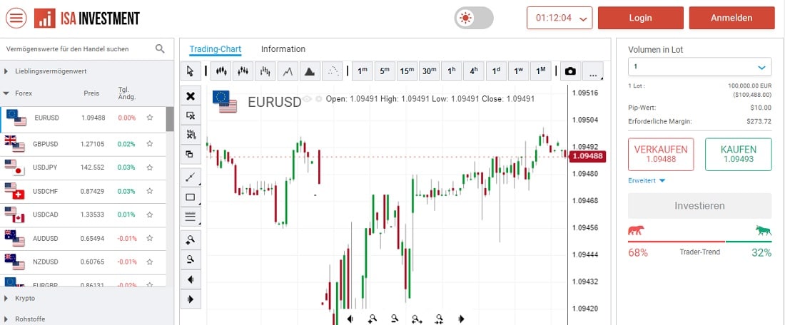 ISA Investment ist ein vertrauenswürdiger und benutzerfreundlicher Online-Broker, der sowohl Anfängern als auch erfahrenen Tradern eine optimale Handelsumgebung bietet. Der Broker legt großen Wert auf die Sicherheit der Kundendaten und Gelder, was ein sicheres Handelserlebnis ermöglicht. Sie haben Zugang zu einer breiten Palette an Handelsinstrumenten und können Ihr Portfolio mühelos zusammenstellen und anpassen.
