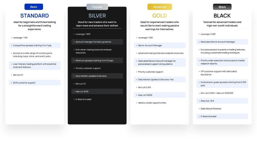 Les différent comptes de trading offerts par GMZ Global offrent des conditions intéressantes. Peut importe votre niveau ou votre portefeuille, vous trouverez une solution adaptée à vos besoins. Les niveaux de spread et d’effets de levier sont bons, même pour les comptes de base. Ils vous donnent tous accès à de nombreux actifs et à un support client dont j’ai pu éprouver le professionnalisme et la rapidité.