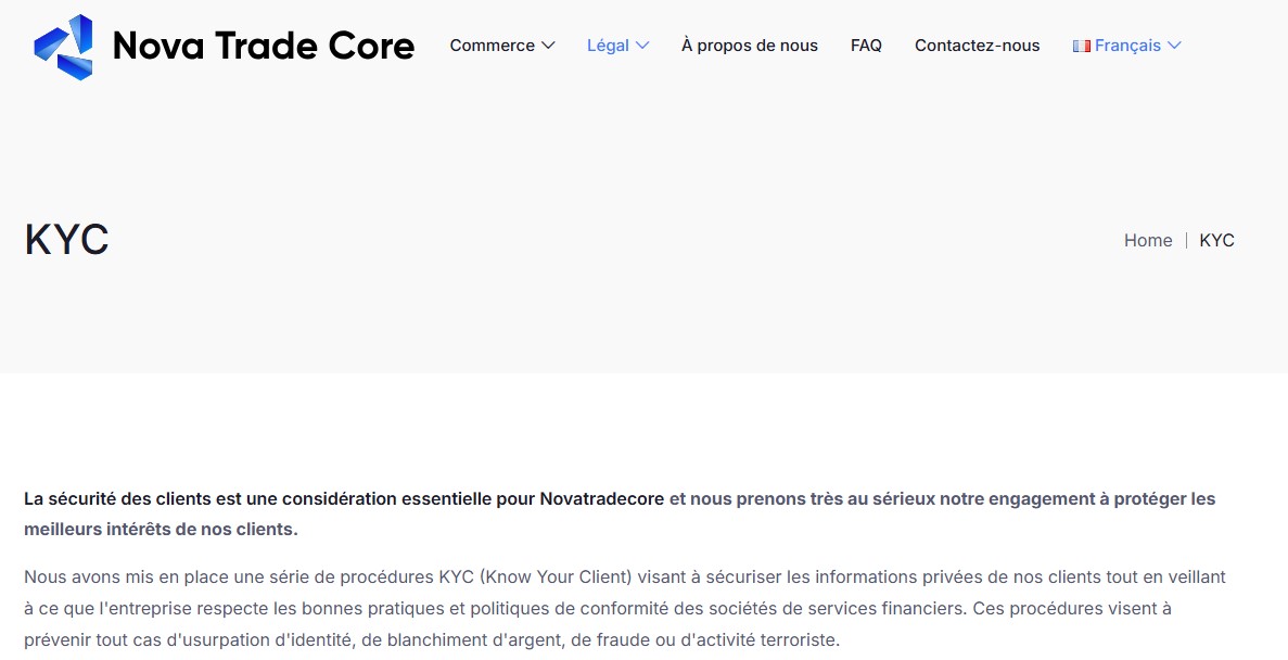 Pour commencer, je vais parler des politiques strictes que la plateforme de courtage Nova Trade Core a mises en place pour protéger la plateforme des cybercriminels et des cybercrimes. Elle dispose de politiques strictes de vérification de l’identité (Know Your Customer, KYC) et de lutte contre le blanchiment d’argent (Anti-Money Laundering, AML). La politique KYC aide à vérifier chaque trader qui rejoint la plateforme pour s’assurer qu’aucune personne avec de fausses informations ou une identité volée ne s’inscrit. Cela se fait en obtenant toutes leurs informations d’identité, comme les cartes d’identité, les adresses e-mail, les factures de services publics, les numéros de compte, etc.