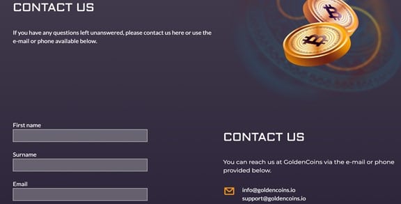 GoldenCoins has a responsive customer support team that is available 24/7. Their flexible operating hours ensure that someone’s always answering emails, which is ideal, especially for those trading on weekends. Furthermore, their support team can be contacted via email or the live chat service.