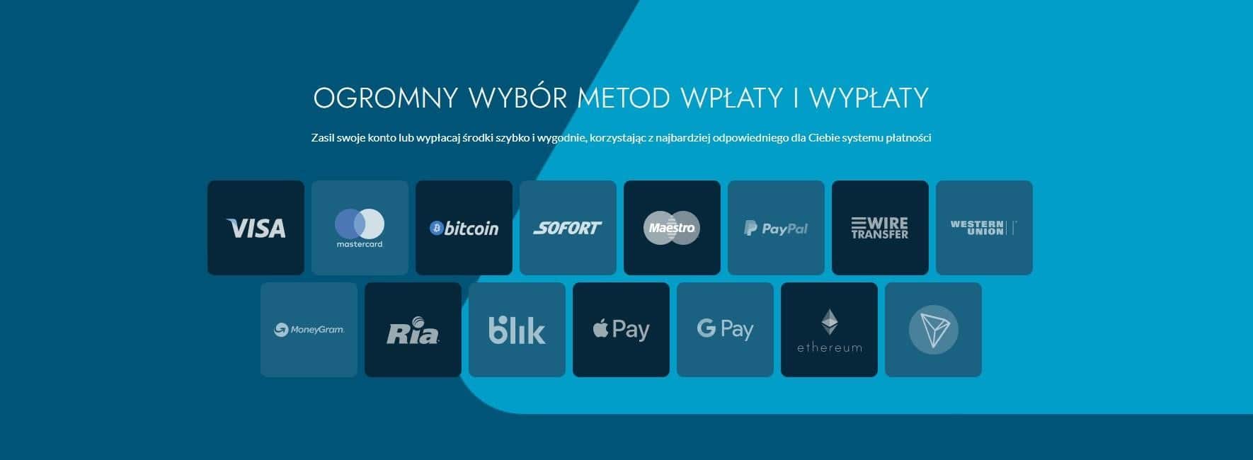 Stonecapitals oferuje wiele różnorodnych metod płatności. Wśród dostępnych opcji znajdują się między innymi karty płatnicze (Visa oraz Mastercard), przelew bankowy, BLIK, Google Pay, kryptowaluty i e-portfele. Dzięki temu wpłata i wypłata pieniędzy przebiega szybko i bezproblemowo.