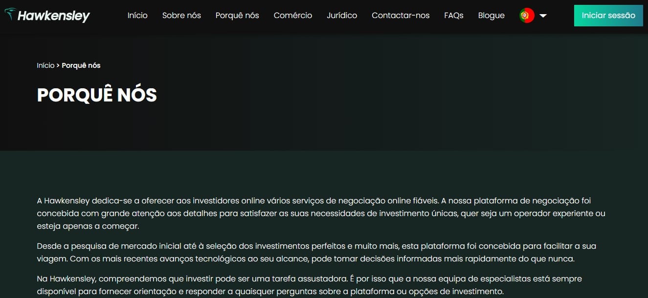 Atualmente, não é de se surpreender que os traders on-line estejam exigindo mais de suas corretoras em termos de funcionalidade. À medida que nossos estilos de vida se tornam mais dinâmicos e nossas agendas mais lotadas, os usuários buscam melhores recursos em suas plataformas. Infelizmente, muitas plataformas que atualmente oferecem serviços ainda não aprimoraram seus recursos. Portanto, os traders querem mudar para opções melhores. Nesta análise da Hawkensley.com, discutirei o que essa corretora oferece à sua base de usuários.