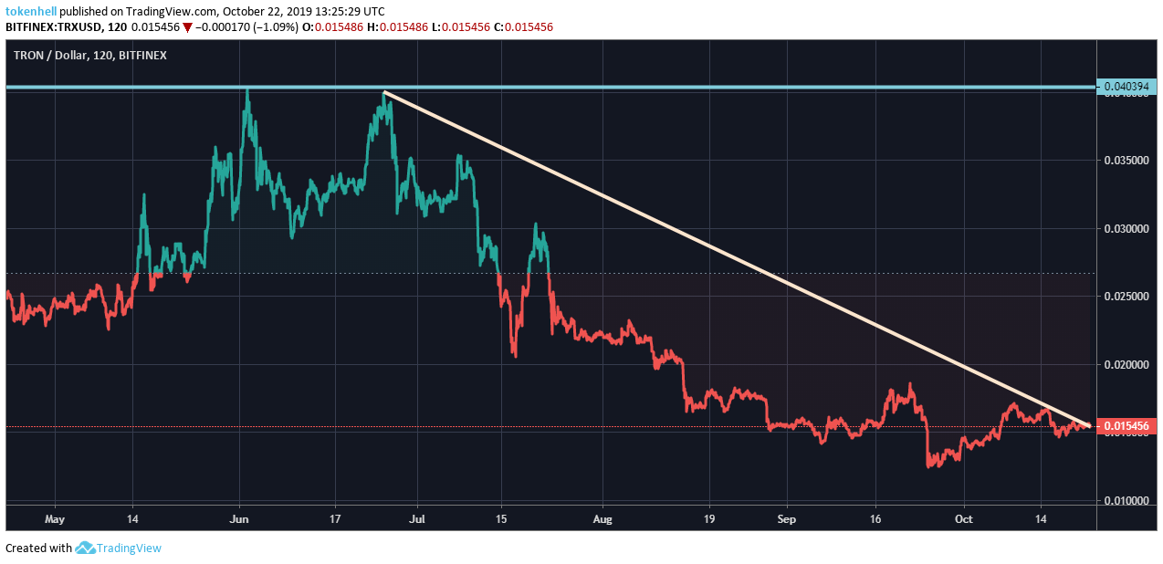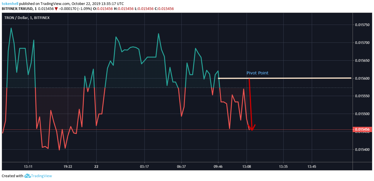 Tron is still trading in the bearish trend. The coin has even gone below its pivot point of $0.0156. And the token is constantly going away from the pivot point. The coin is trying to recover but has not got an edge in this regard. After studying the resistance and support levels of the coin, it seems that it may remain in the bearish trend in the upcoming days.