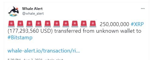 Whale alert (on-chain analytics that monitors cryptocurrency transactions) have revealed that 255 million XRP moved was moved to Bitstamp exchange within the past 14 hours. However, XRP’s parent company, Ripple, is continuing its efforts in improving the coin’s liquidity by sending XRP to the Huobi trading platform.